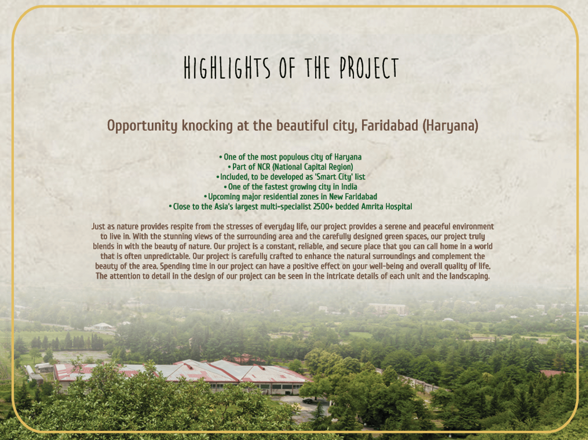 Mansha Orchid is strategically located in Sector 110, Faridabad, offering a perfect blend of urban living and natural surroundings.