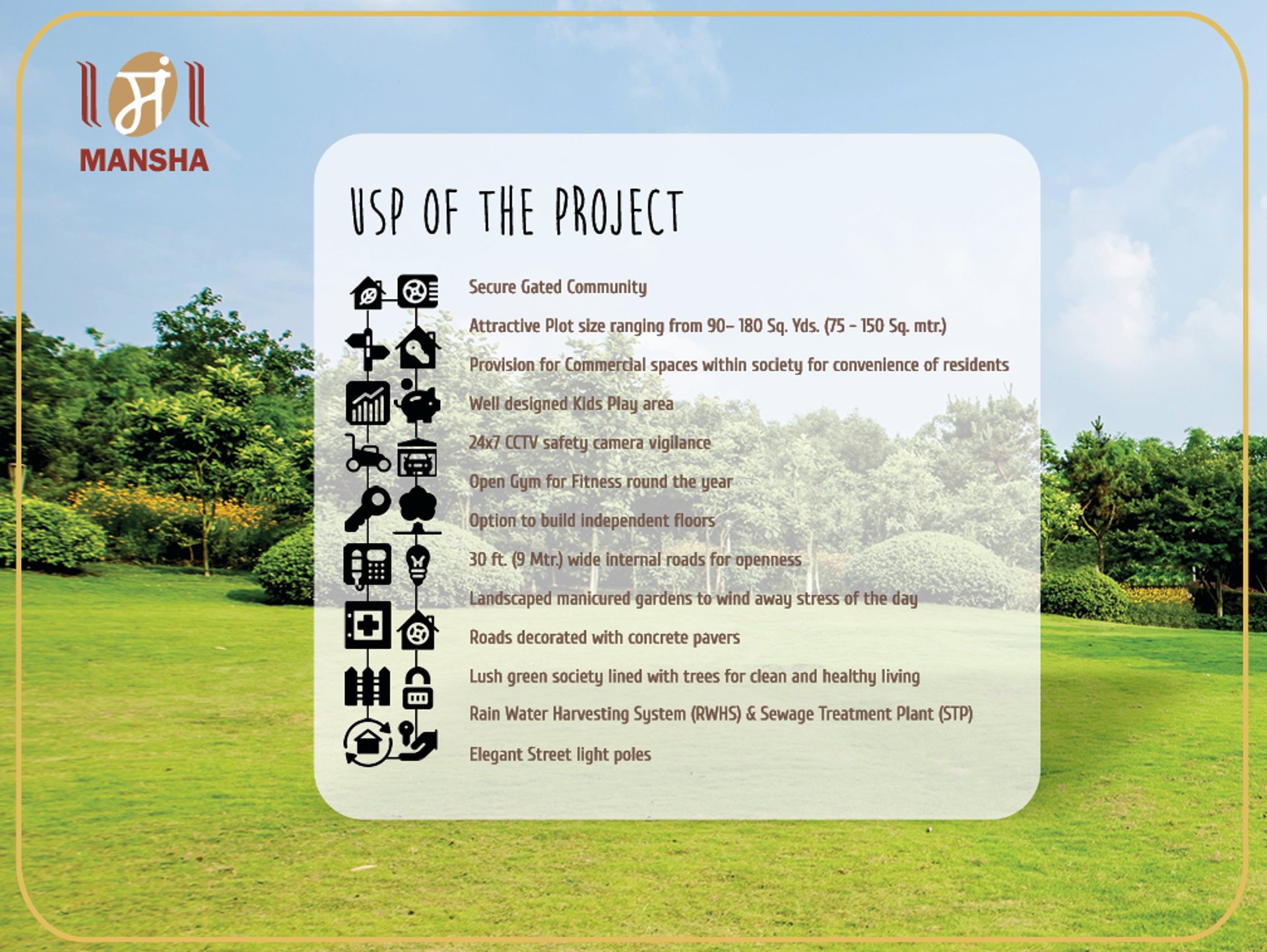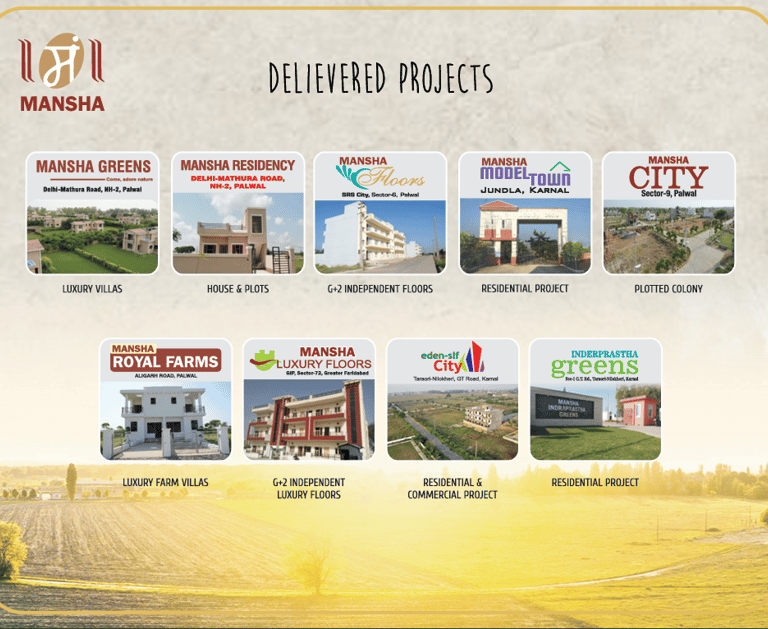 Mansha Orchid is a premier real estate development offering exclusive premium plots in the heart of Faridabad. Designed to provide a luxurious lifestyle, our plots are strategically located to offer the best of urban living while being surrounded by nature. With a commitment to quality and customer satisfaction, Mansha Group has established itself as a trusted name in the real estate market.