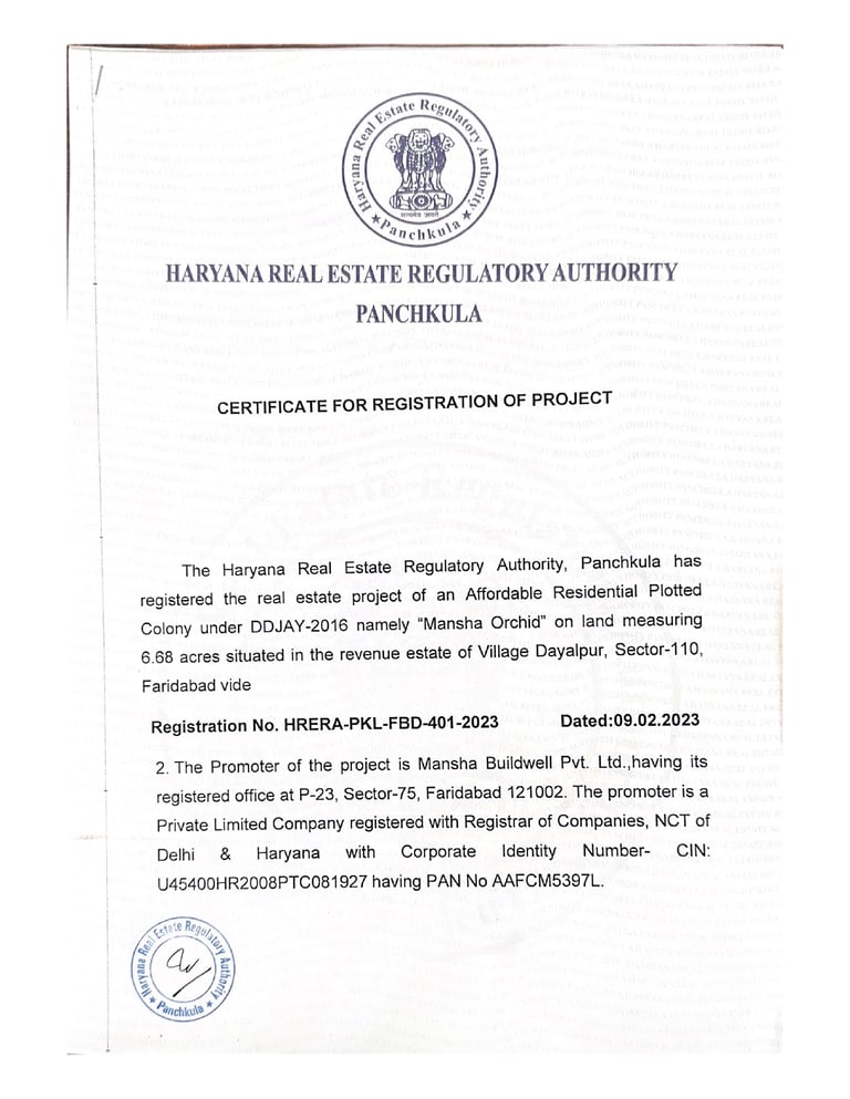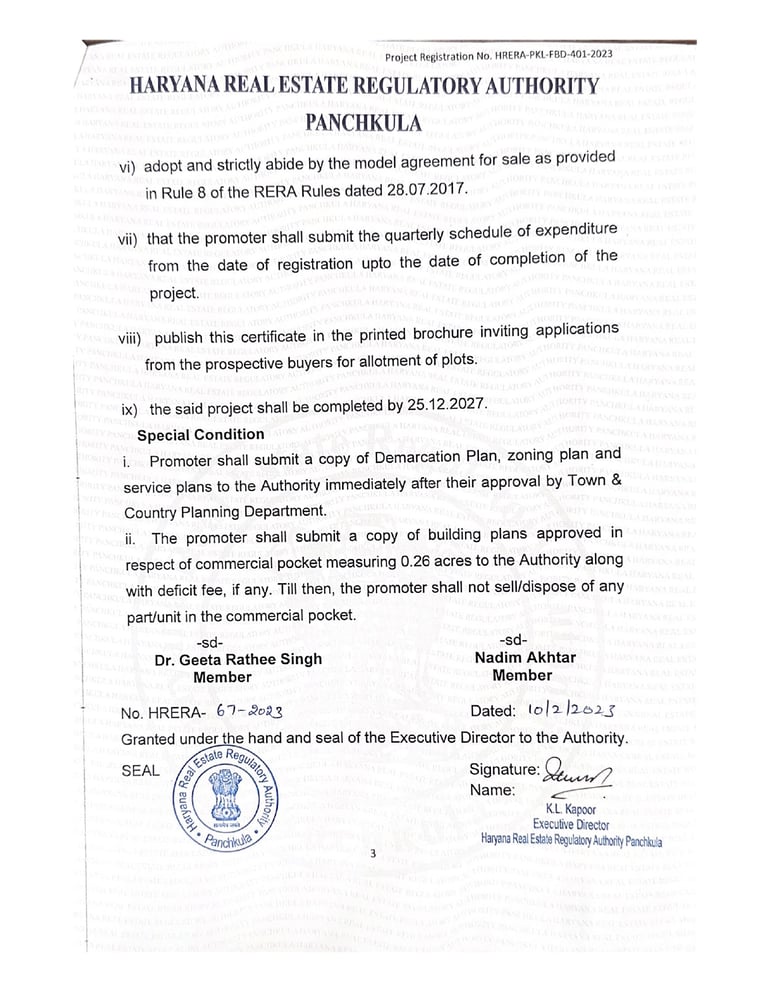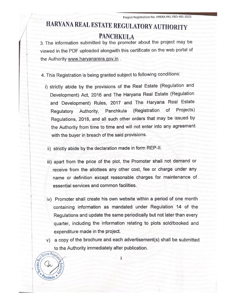 RERA Registration No-HRERA-PKL-FBD-401-2023